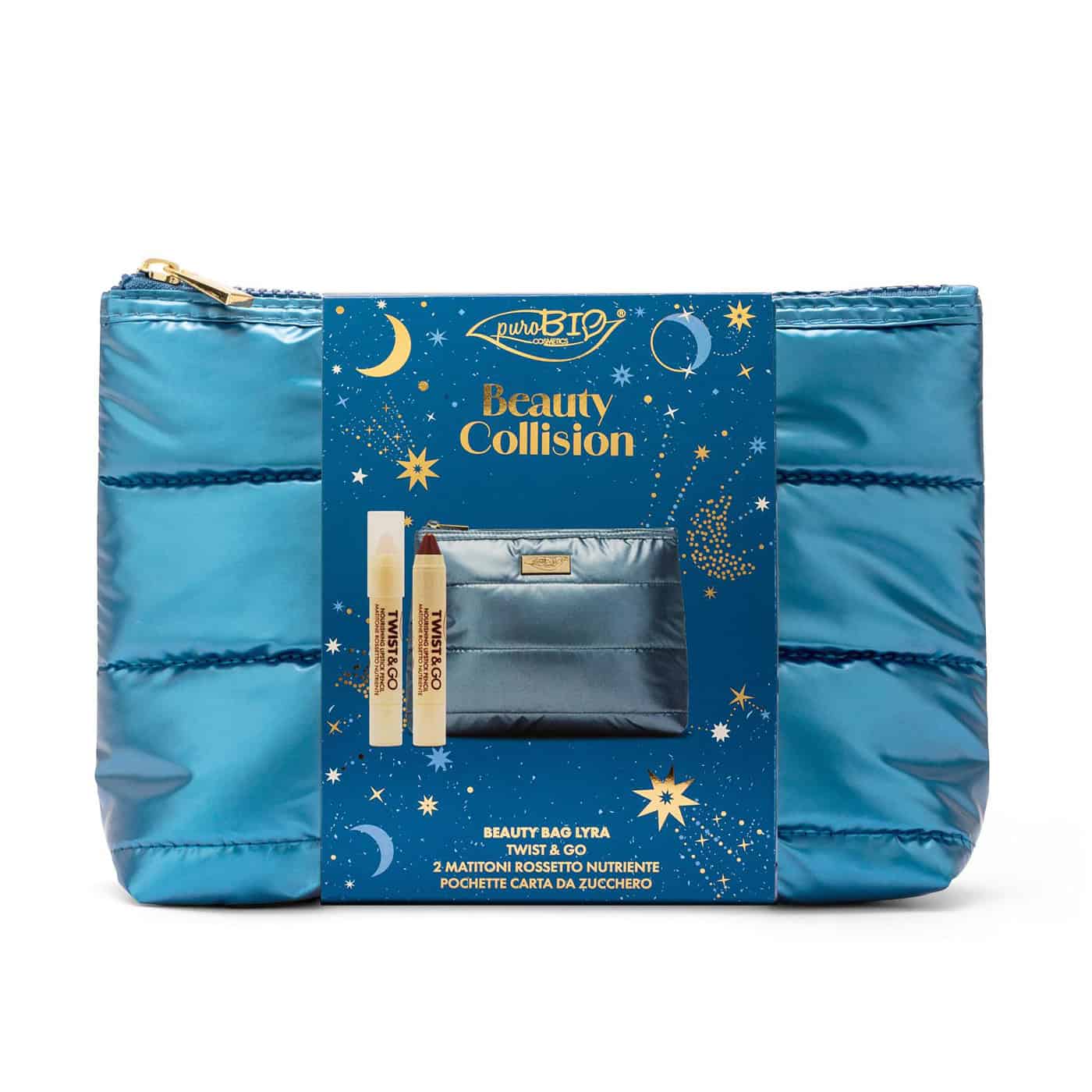 Offrez à vos lèvres un soin complet et une touche de couleur naturelle avec la trousse TWIST & GO. Cette élégante trousse bleu roi renferme deux sticks à lèvres bio :