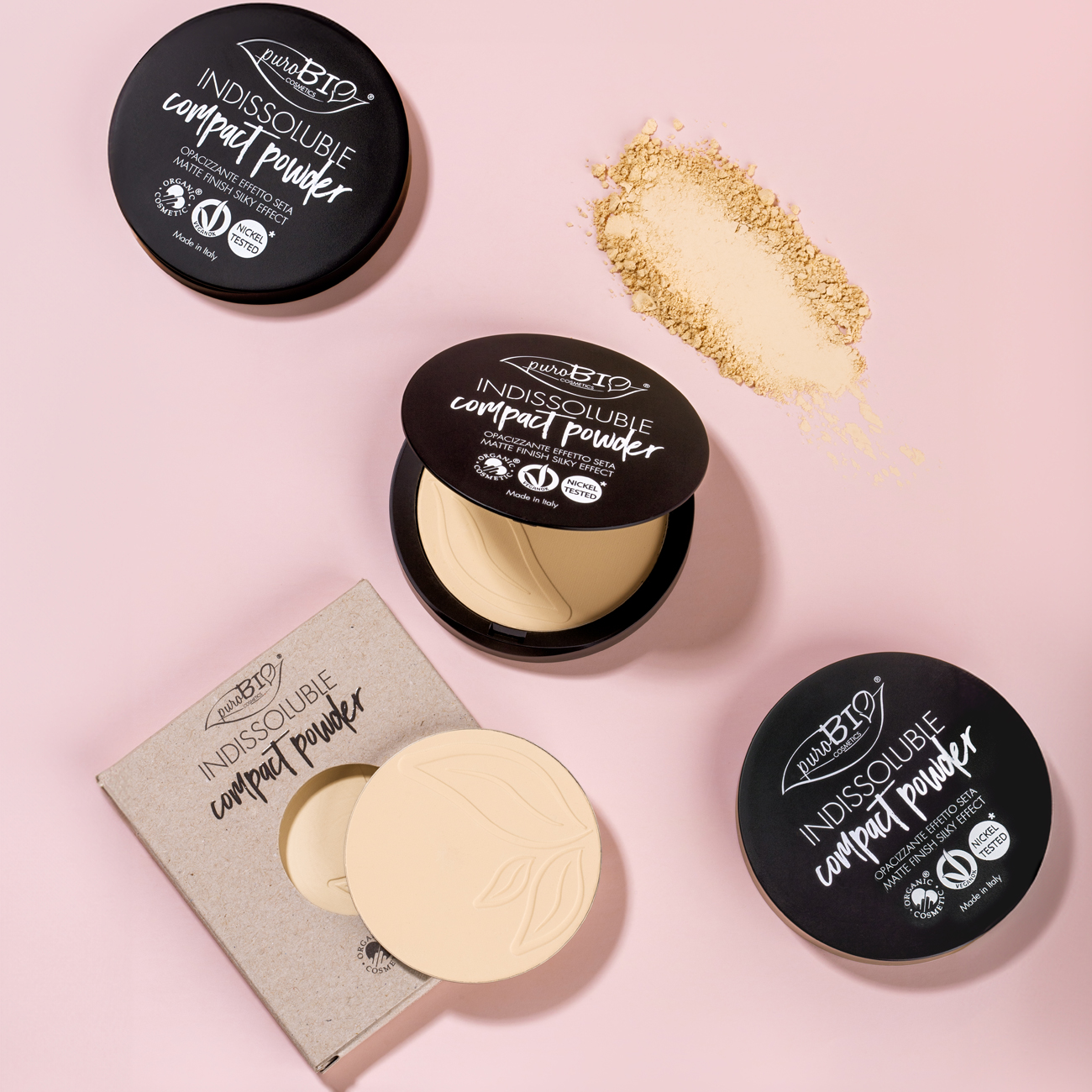 Prélever la poudre à l’aide du pinceau puroBIO 01, appliquer tout d’abord sur la zone T puis balayer sur l’ensemble du visage.